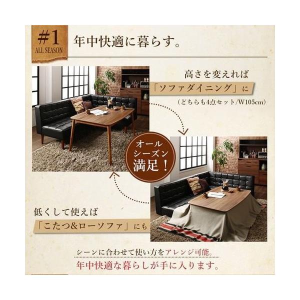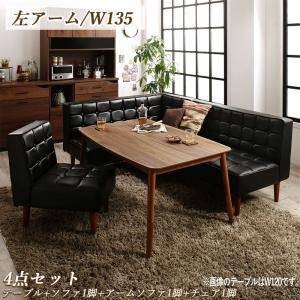 ダイニングテーブルセット 5人用 コーナーソファー L字 ベンチ 椅子 レザー 4点 (机+ソファx1+左肘x1+チェア1) 幅135 西海岸 ヴィンテージ 高さ調節 低め こたつ