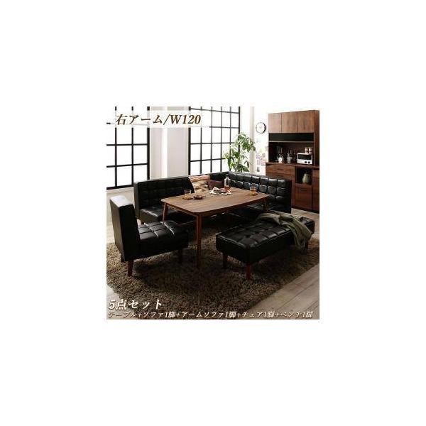 ダイニングテーブルセット 7人用 コーナーソファー L字 ベンチ 椅子 レザー 5点 (机+ソファx1+右肘x1+チェアx1+長椅子x1) 幅120 西海岸 高さ調節 低め こたつ