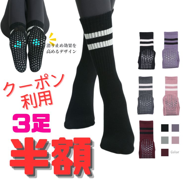 3足で半額クーポン ヨガソックス つま先あり 滑り止め付き 指分かれてない 丸型ヘッド レギンス用 ミドル丈 ロング丈 レディース ジム用 3足セット 滑らない 靴下 ハイソックス つま先すっぽり ピラティス ダンス フィットネス コットン ふくらはぎ丈 転倒防止 メンズもOK