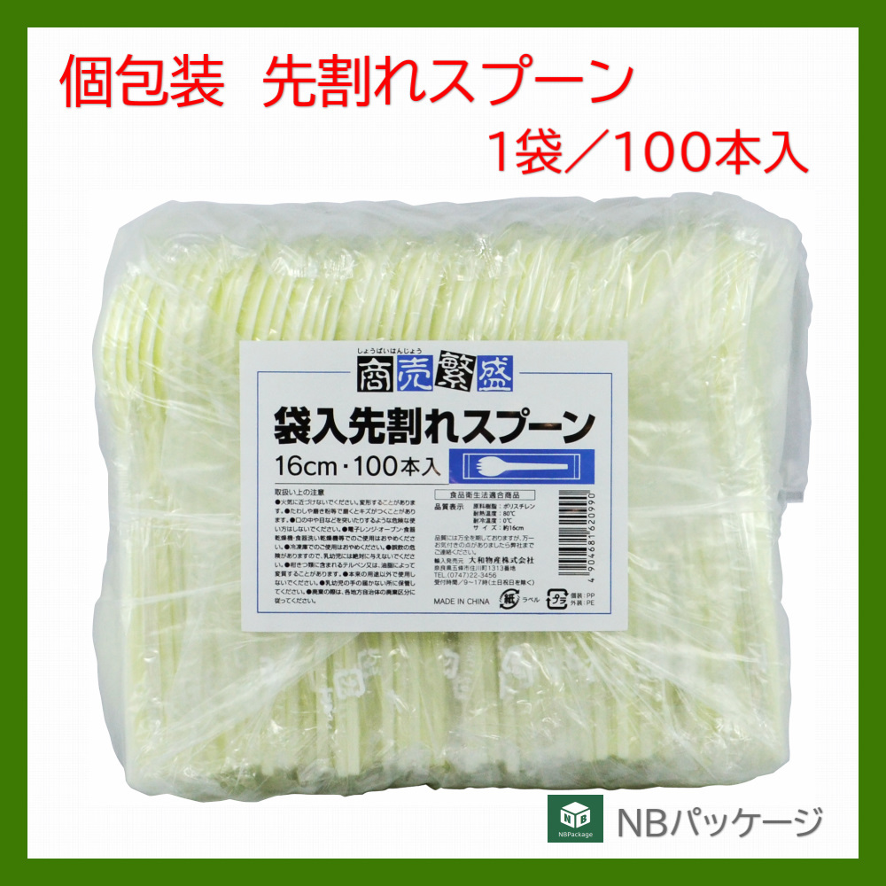 スプーン 使い捨て 個包装 商売繁盛 袋入先割れスプーン16cm 100本入(1袋) 「大和物産」「業務用」 テイクアウト カトラリー