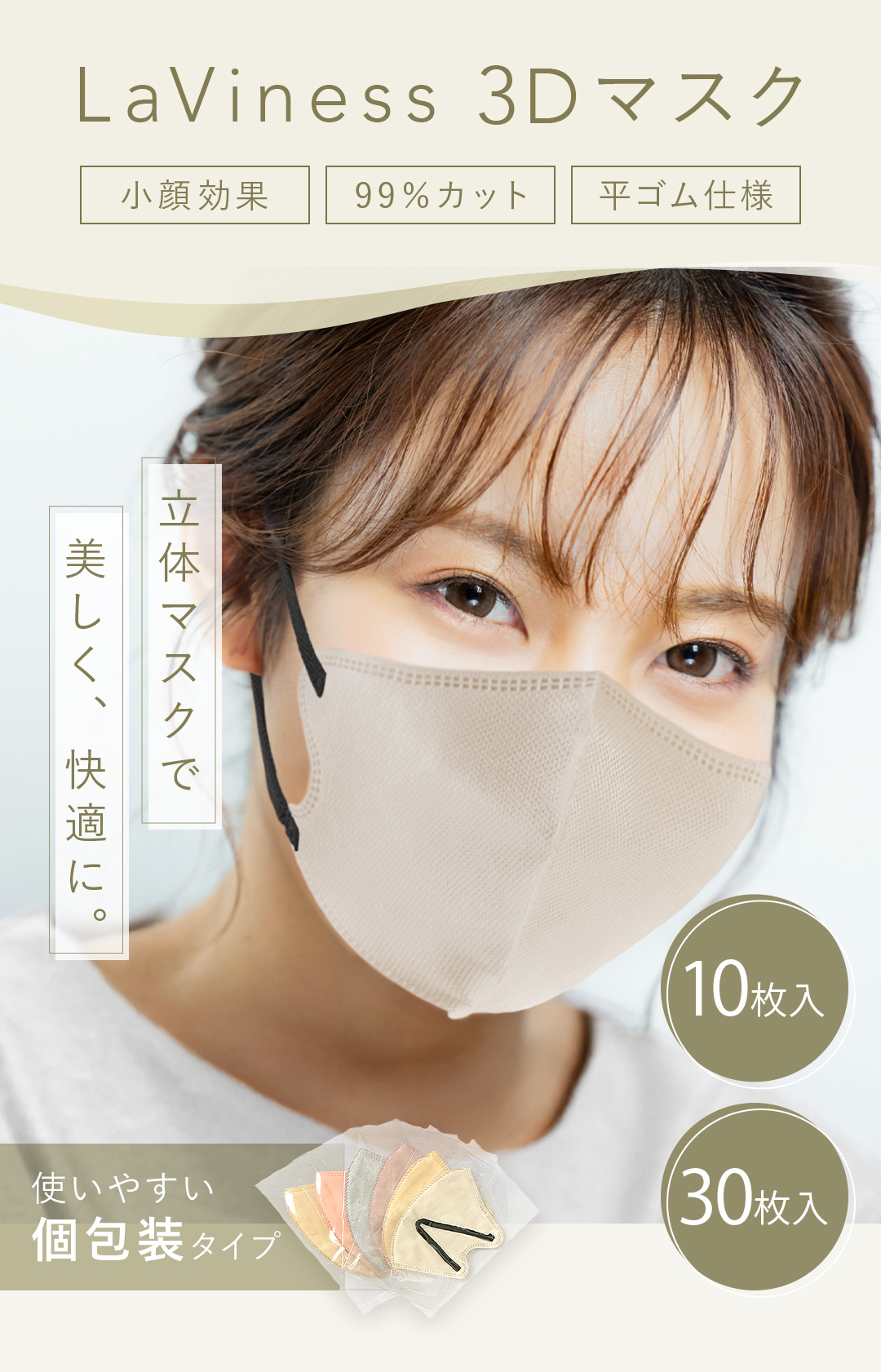 ・ [ LaViness マスク 不織布 3Dマスク 立体マスク 日本製 バイカラー 30枚 ]