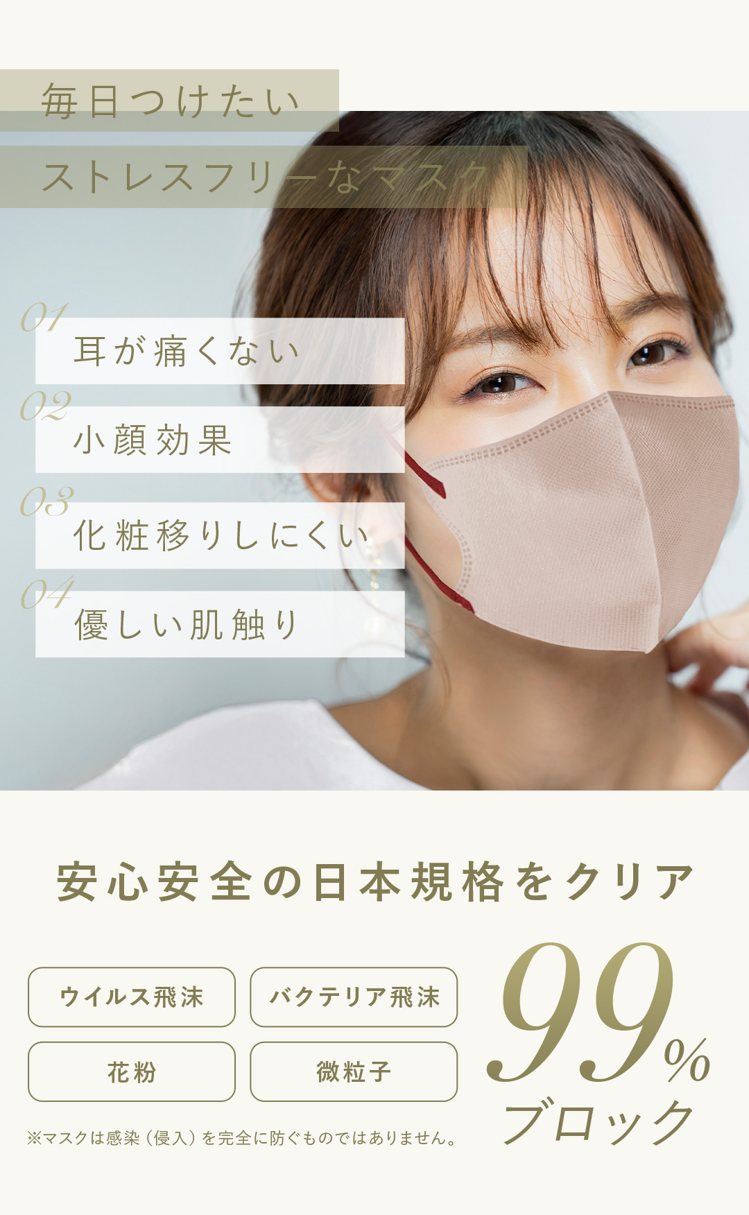 女性の第一印象を磨き続けるブランドから生まれた3Dマスク。安心の国内生産にこだわりをもつブランドです。