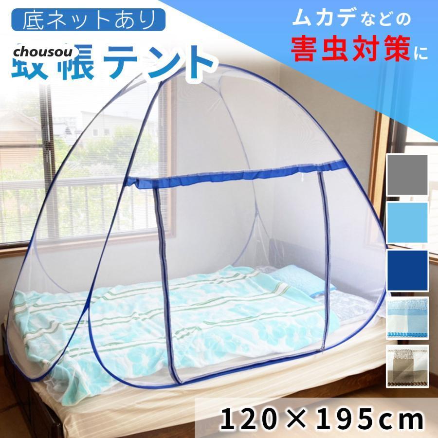 蚊帳 テント ワンタッチ 一人用 フクロモモンガ 室内 シングル ベビー ベット 120×195 かや モスキートネット 底付き 子供 簡単設置 虫よけ キャンプ