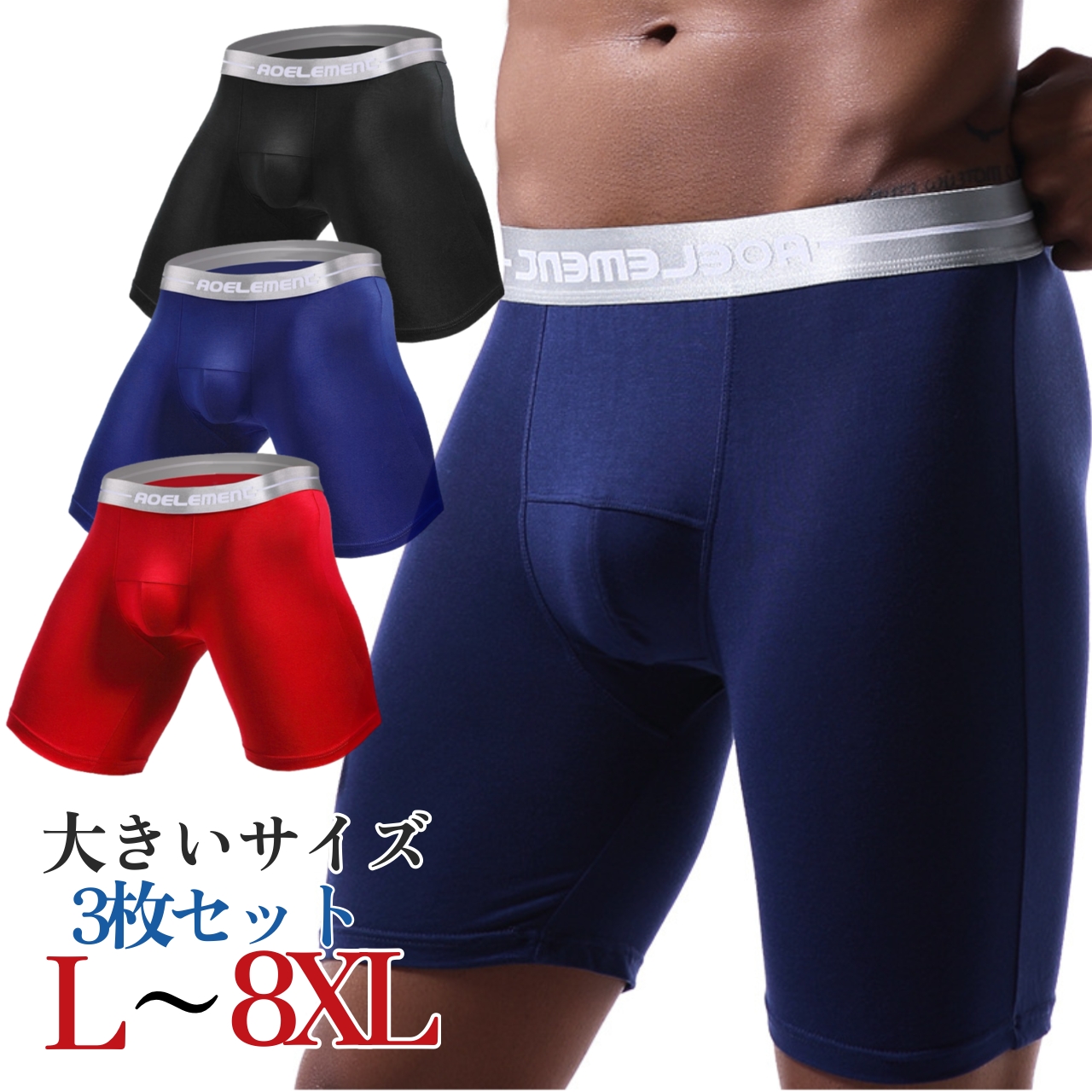 ロングボクサーパンツ 3枚セット 吸収速乾 股ずれ防止 前閉じ ボクサーパンツ メンズ パンツ 下着 大きいサイズ XL-7XL 無地 爆買
