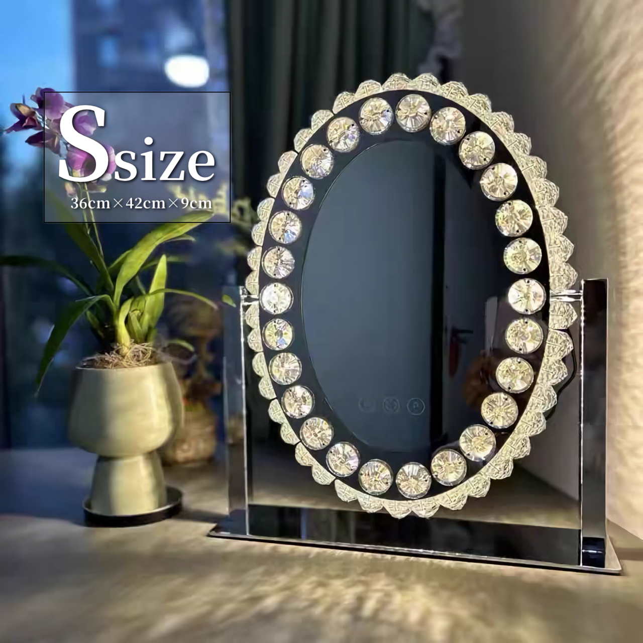 女優ミラー ドレッサー 化粧鏡 クリスタル おしゃれ LEDライト 無段階調光 角度調整 ハリウッドミラー 卓上ミラー LEDミラー クリスマスプレゼント (Sサイズ)
