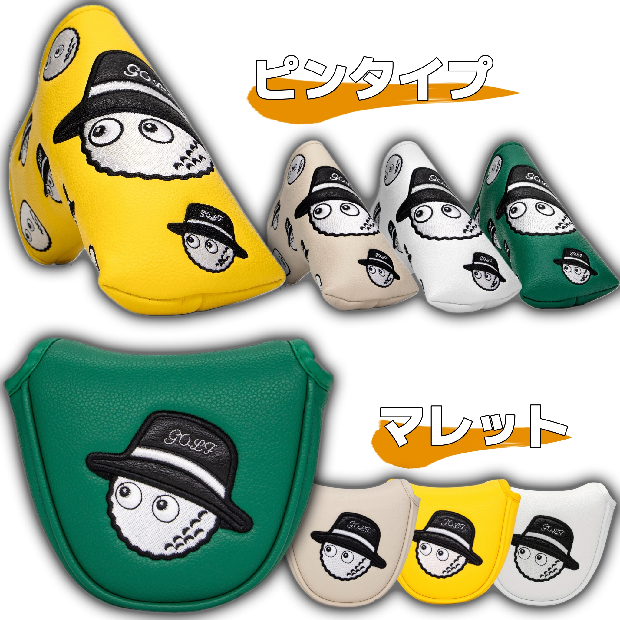 パターカバー ゴルフ ヘッドカバー ピンタイプ ピン型 マレット マグネット スコッティーキャメロン オデッセイに適合 にこちゃん 白 緑 黄色 爆買