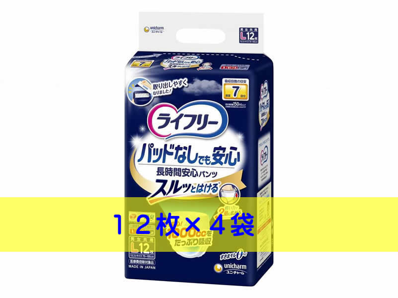 ケース売り ライフリー パッドなしでも長時間安心パンツ Lサイズ 12枚 ×4袋