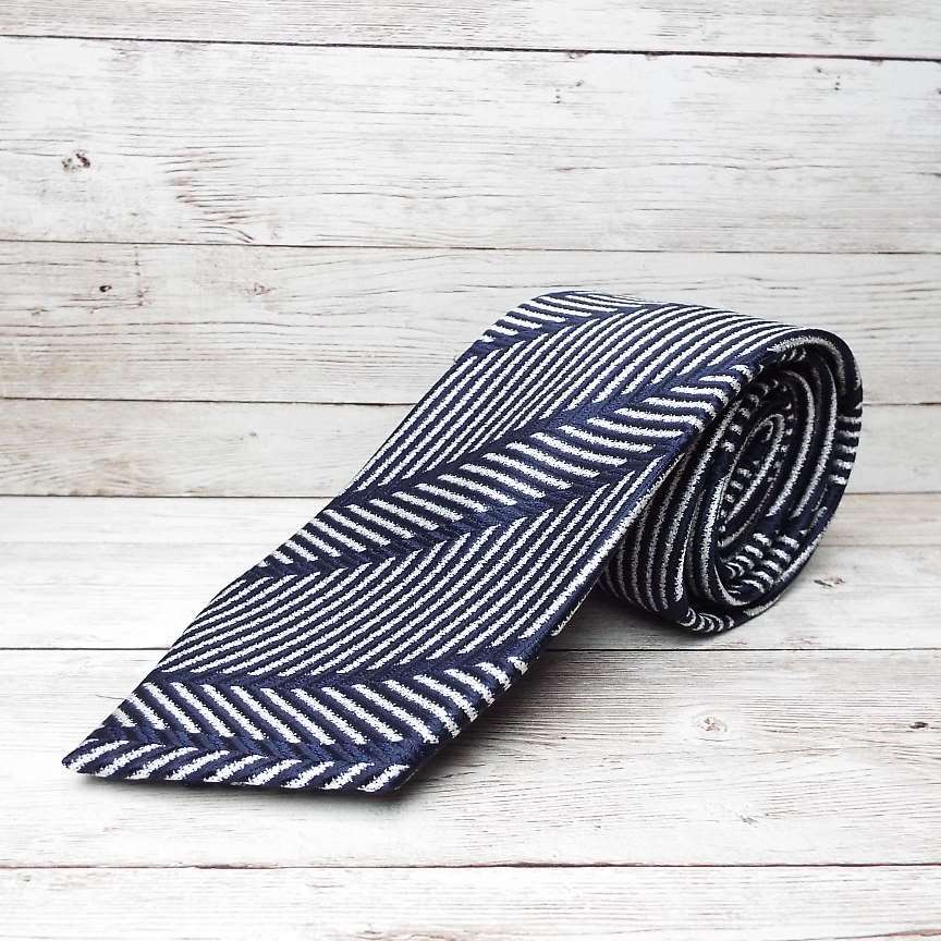 ◎古典模様が素敵】ART TAKAGAKI(アートタカガキ)ストライプ 総柄ネクタイ|シルク100%|ネイビーシルバー系|USED