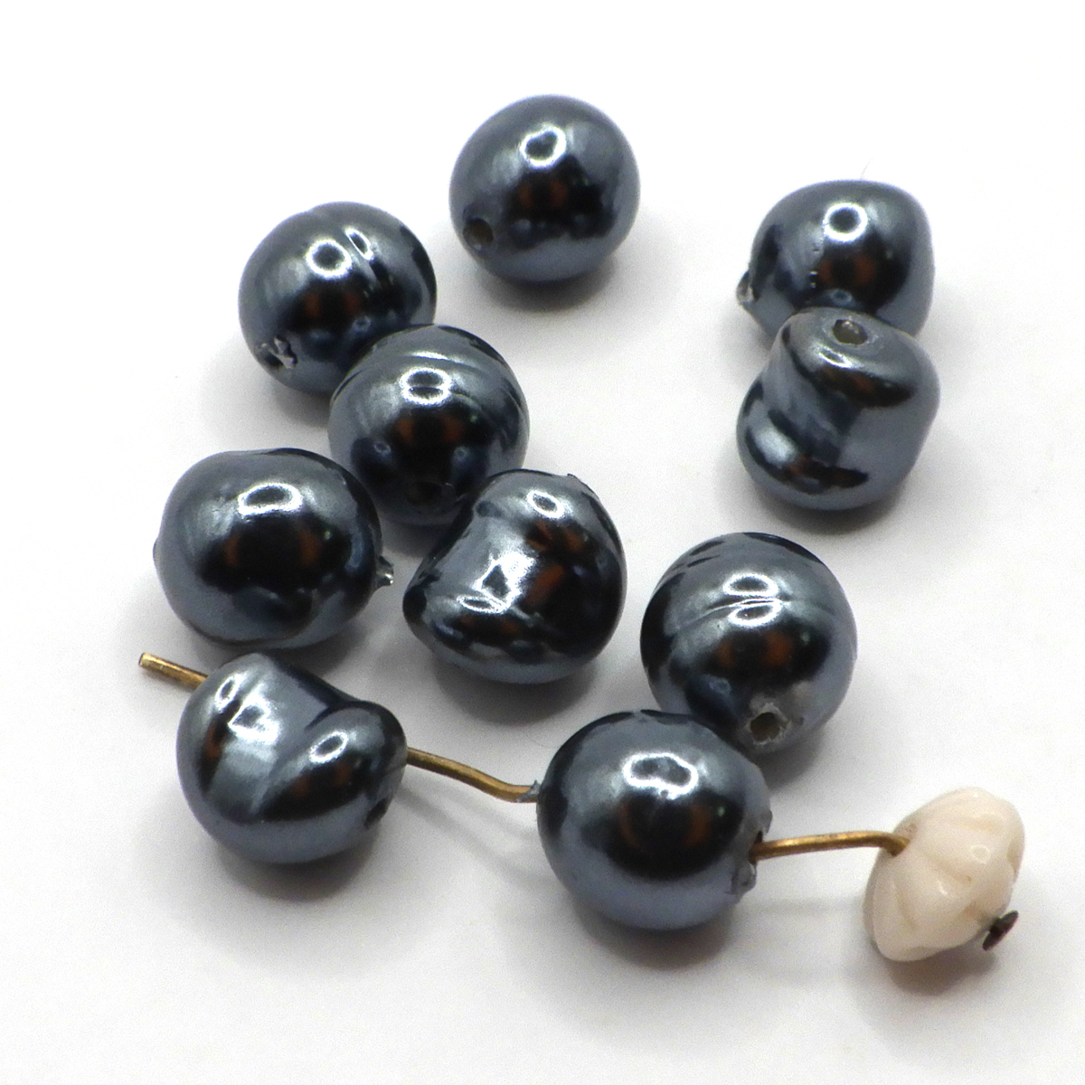 ミリアムハスケル バロックグラスパール ジェットヘマタイト色(ダークグレー) 5.5mm〜6mm 10個 を送料無料で、クリックポストでお送りします。