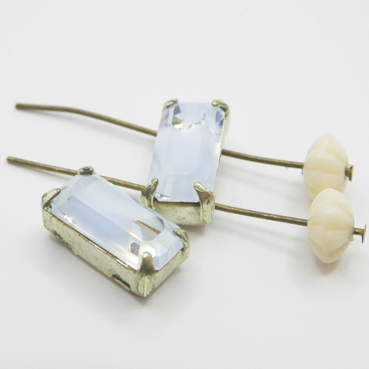 ヴィンテージスワロフスキー LightBlueGivre 10.5mmx5.5mmシルバー4つ穴台座付き 2個