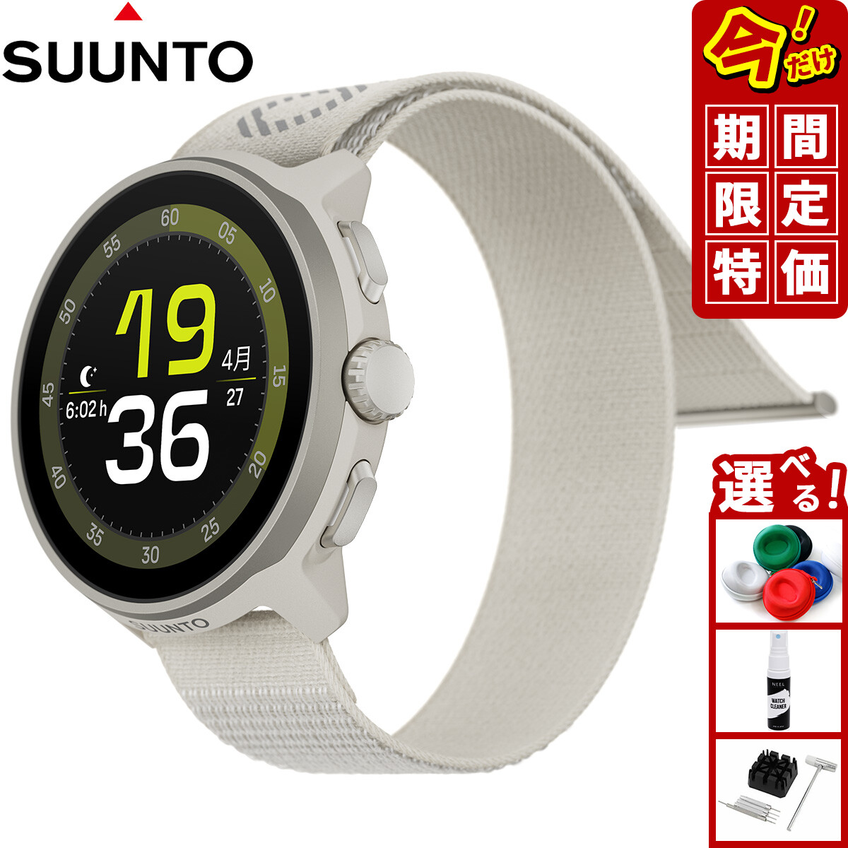 | 付属 | 時計本体(純正バンド含む) / 充電ケーブル / クイックスタートガイド |