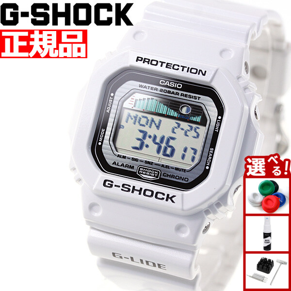 【「正規販売店」ならではの安心と高いクオリティの保証。ジーショック G-SHOCK カシオ G-SHOCK 腕時計 G-LIDE GLX-5600-7JF CASIO G-ショック 世界のトップサーファーをはじめ、エクストリーム系スポーツをサポートしているG-SHOCKから、スポーツラインである「G-LIDE(Gライド)」の'08夏モデルが登場。●耐衝撃構造●20気圧防水機能●ワールドタイム:世界48都市(29タイムゾーン)、サマータイム設定機能●ムーンデータ(月齢・月の形表示)●タイドグラフ●電池寿命約7年●操作音ON/OFF切替機能●ELバックライト(オートライト、残照機能付き)●報音フラッシュ機能(アラーム/時報、タイマー予告/タイムアップ、ストップウオッチオートスタート、報音連動発光)】