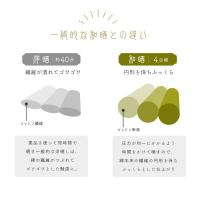 日本伝統の晒加工である「和晒」は、巨大釜と天然水を使い、じっくり手間ひまかけて4日間ほど煮込むことで、繊維の1本1本が綿本来の丸みを保ちふんわりやわらかい仕上がりになります。
