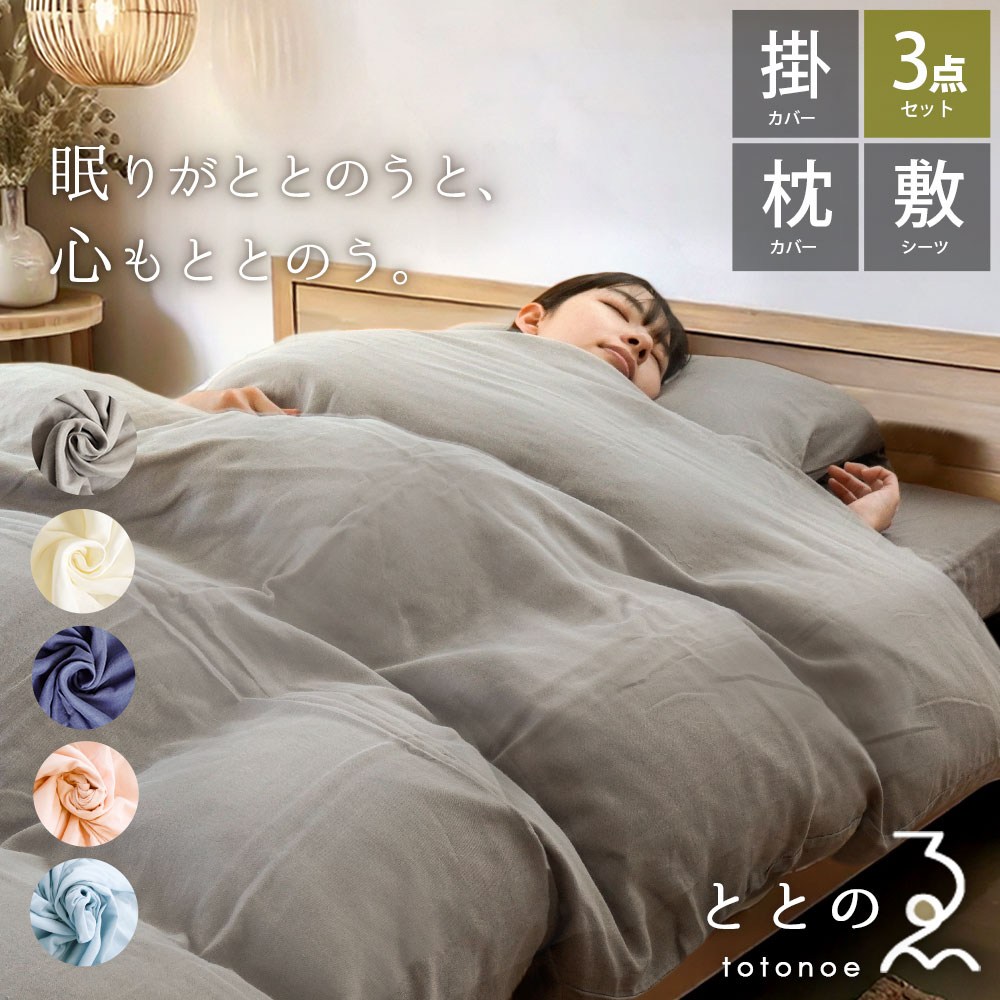 和晒 布団カバーセット シングル 3点セット 日本製 綿100% 2重ガーゼ フィットシーツ 敷き布団カバー 枕カバー ととのゑ