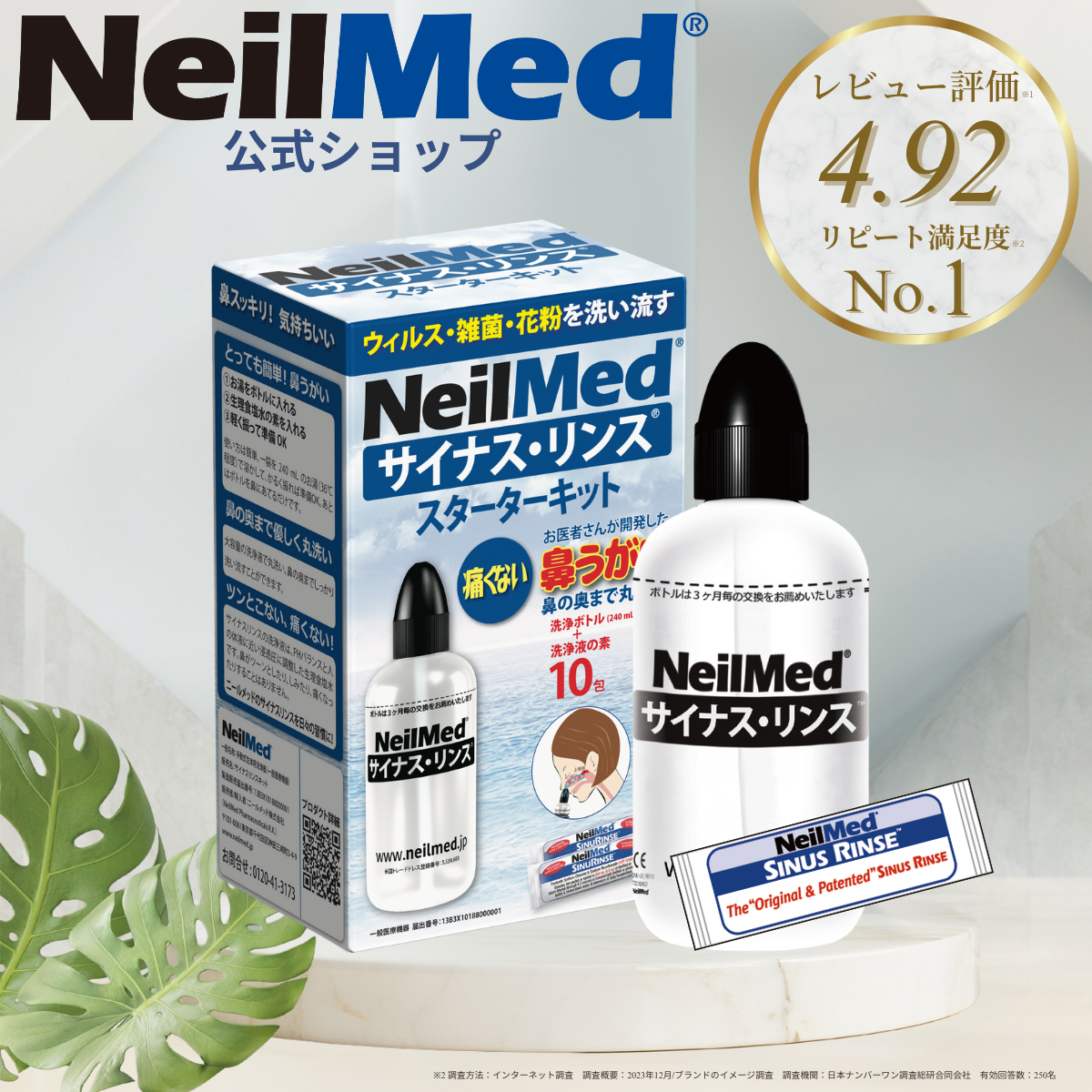 メーカー公式_サイナスリンス スターターキット10包(240ml*10回分)鼻うがい NeilMed ニールメッド 洗浄ボトル付 鼻洗浄 鼻呼吸 ウィルス対策