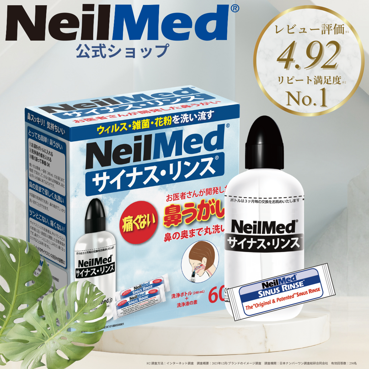 メーカー公式_サイナスリンス キット60包(240ml*60回分) 鼻うがい NeilMed ニールメッド 洗浄ボトル付 鼻洗浄 鼻呼吸 ウイルス対策