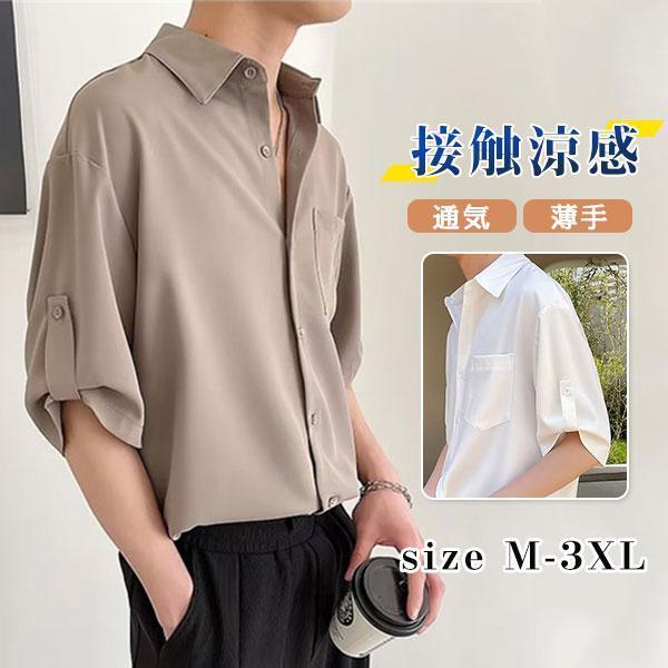 只今底値!シャツ 半袖 メンズ 5分袖 開襟シャツ カジュアル 接触涼感 通気性 薄手 折り襟 無地 ゆったり 夏服 お兄系 ビジネス 20代 新作 涼しい