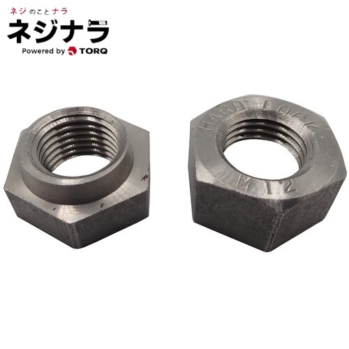 ハードロック工業製のゆるみ止めナットです。偏芯加工した凸ナットと真円加工を施した凹ナットの2つが存在しており、この2つを組み合わせることでボルト軸直角方向にクサビの原理による強力なロック効果を力学的に発生させます。