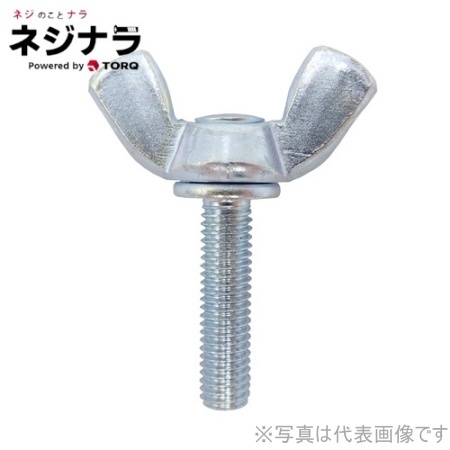 取っ手部分の羽根が蝶の形状で、手で簡単に締めたりゆるめたりできるツマミボルトです。 2種のRタイプで、翼端が角形になっています。