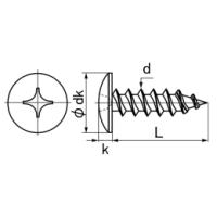 ■説明:相手部材のタップ立てが不要で、ねじをきりながら締付けることが出来ます。ねじ部の先端がとがっていて木工材などの場合は下穴をあけずに締め付ける事も可能ですが相手部材が割れる場合もございますので基本的に下穴をあけて締め付けを行います。ナベ頭より径が大きく、厚さは少し薄いです。