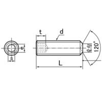 ■説明:頭部が無く、全ねじの形状となってます。六角穴があいていて六角レンチで締め付けします。主に軸となるシャフト等を固定したり、調整等に使用されています。ねじ部先端は中央が窪んでいて相手材には円で接触する形となります。JISでの正式名は六角穴付き止めねじになりますが六角穴付きボルトと混同してしまいやすい為、ホーローセット、ホーローなどと呼ばれる場合も多いです。英語表記の「Hexagon socket set screws」のセットとHollow(くぼみという意味)のホローからホーローセットと呼ばれるようになりました。表面処理は鉄の場合、焼入れ黒染め処理となりますが、こちらの商品はその処理が一般的であることから生地と表記しています。一般的にホーローセットと言ったらこちらのクボミ先となります。
