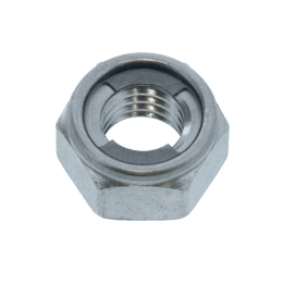■説明:ゆるみ止めナットです。ナットとフリクションリング(特殊バネ)の2点の部品から出来ており、ナット上面に フリクションリングをカシメ加工により固定し、一体化させてあります。フリクションリングがボルトなどのねじ山に接した時のバネ作用により、ゆるみ止めの効果を得ることができます。