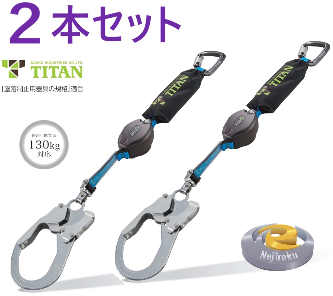 在庫あり即納 2本入】 巻取式 シングル リーロック mini シングルランヤード HL-HS-130 型 サンコーTITANタイタン HLHS130・HL-HW-130 型・HL-HW-130-CC HLHW130