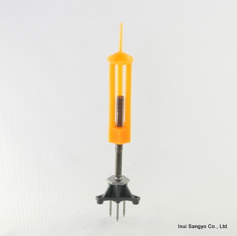 ・バネ式は同梱の打込パイプで、ポリ式はポイント