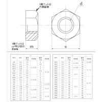 M16 並目P=2 ステンレス六角ナット1種 六角ナット1種は一番流通量の多い(一般的な)タイプのナットです。