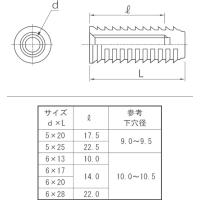 鬼目ナットFタイプ M5X25●合板やパーティクルボードなど比較的粗い材質や薄板の木口などに適した接着剤併用型埋込みインサートナットです。