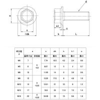 M6X16L ブラックステンレスフランジボルト2種フランジ径14mm、平径(六角2面幅)10mm、L寸は首下表記です