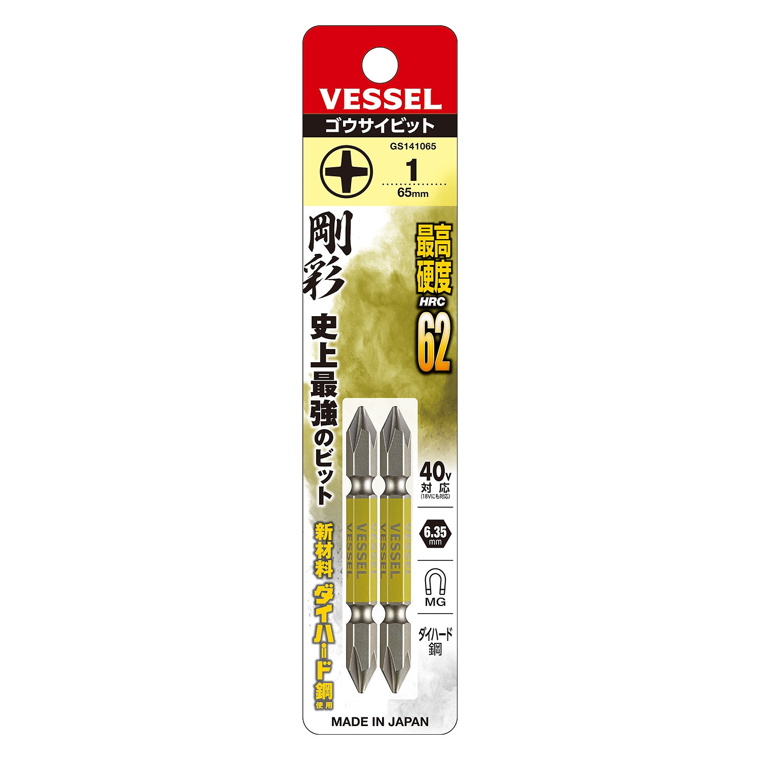 Vessel(ベッセル)剛彩ビット 両頭#1-65mm(両頭 剛彩ビット No.GS141065(+1×65 2本パック))