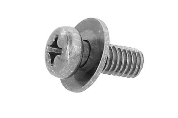 十字穴付きの 「なべ頭」 で、頭部座面に JIS規格の平座金(丸ワッシャー) を組込み、一体化した組み込みねじです。
