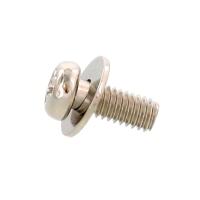 十字穴付きの 「なべ頭」 で、頭部座面に JIS規格の平座金(丸ワッシャー) を組込み、一体化した組み込みねじです。