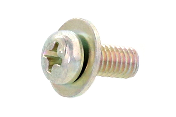十字穴付きの 「なべ頭」 で、頭部座面に JIS規格の平座金(丸ワッシャー) を組込み、一体化した組み込みねじです。