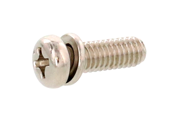 十字穴付きの 「なべ頭」 で、頭部座面に バネ座金(スプリングワッシャー) を組込み、一体化した組み込みねじです。