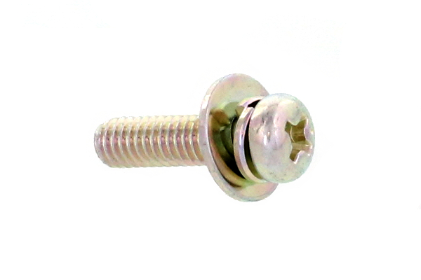 十字穴付きの 「なべ頭」 で、頭部座面に バネ座金(スプリングワッシャー) と JIS規格の平座金(丸ワッシャー) を組込み、一体化した組み込みねじです。
