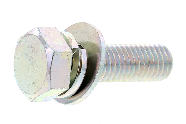 頭部が六角形で、頭部座面に バネ座金(スプリングワッシャー) と JIS規格の平座金(丸ワッシャー) を組込み、一体化した組み込みねじです。