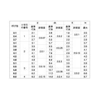 十字穴付きの、丸頭 です。 丸頭とは、頭部が半球形に近い形状です。なべ頭よりも球形に近いものです。 |