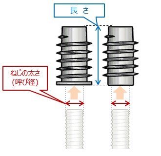 「太さ」、「長さ」共に ミリメートル(mm)単位で表します。 「太さ」の先頭に "M" が付きます。