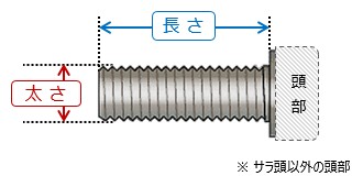 「太さ」、「長さ」共に ミリメートル(mm)単位で表します。 「太さ」の先頭に "M" が付きます。
