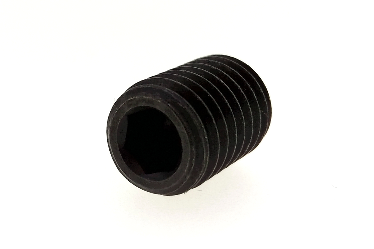 頭部の出っ張りがなく、ねじ部だけで形成されており、工具穴として六角穴の開いた形状です。 正式名称は「六角穴付き止めねじ」 と言うが、「イモネジ」、「ホーローセット」 とよく呼ばれています。