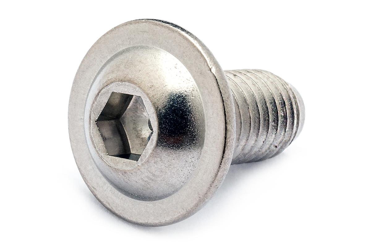 六角穴が開いた丸みを帯びた頭部で、頭部座面側にフランジと呼ばれる円錐形のつばが付いたものです。