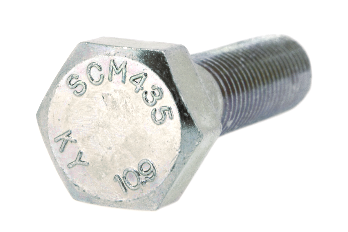 高強度の鉄[SCM435]/シルバーメッキ 六角ボルト [強度区分:10.9] (細目・半ねじ) M12 (太さ=12mm)×長さ=40mm <ピッチ:1.25> 【 バラ売り : 2本入り 】