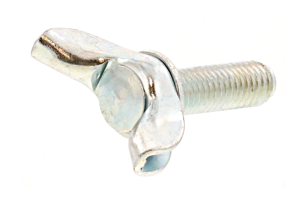 蝶々のはねを広げたような頭部形状で、取っ手部分が鉄板を折り曲げてプレス加工した形状です。 蝶ボルトの中では軽くて安価です。