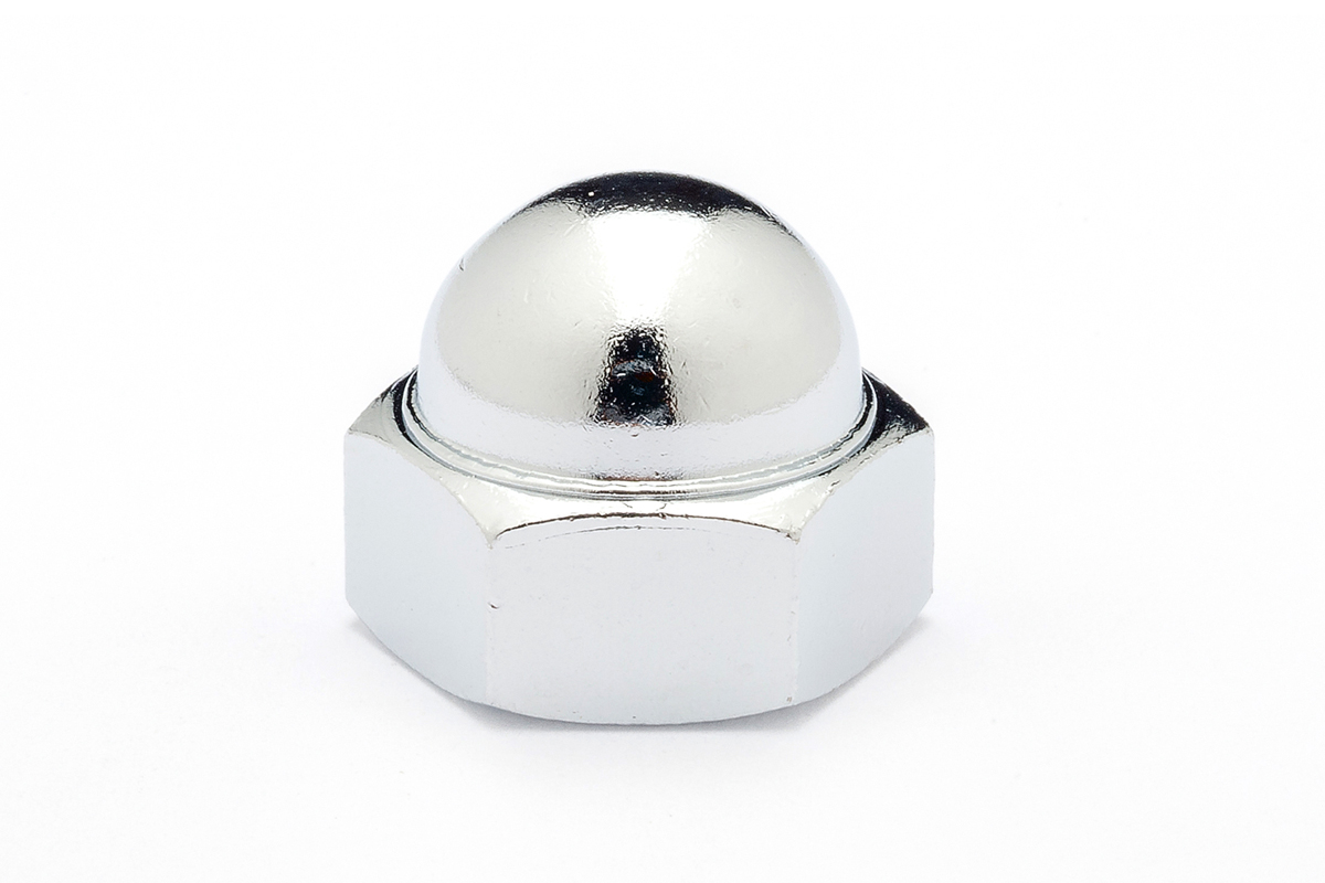 六角ナットの片面に、ドーム形の金属が被さったナット。