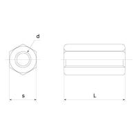 鉄 高ナット (細目) M10 (太さ=10mm)×長さ=50mm <ピッチ:1.25> 【 バラ売り : 1本入り 】