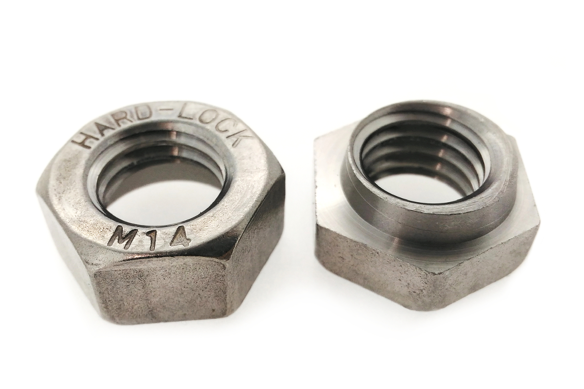 ゆるみ止め用の六角ナットで、凸型ナットと凹型ナットの2個を使用して締結します。 凸型ナットがクサビ作用を促す形状をしており、凹ナットと合わせて締め付けることで、ボルトなどのねじ部に摩擦が生じてゆるみ止め効果を発揮します。
