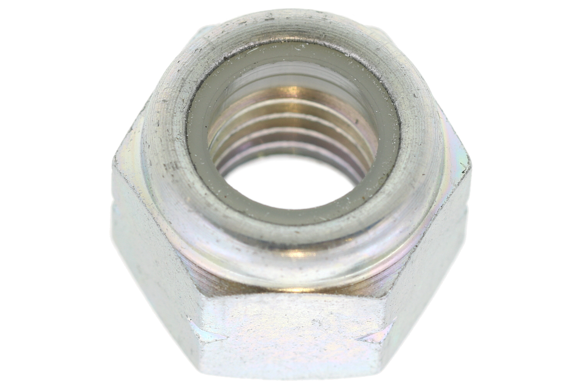 ゆるみ止め用の六角ナットで、上部に付いたナイロン製のリングが、ボルトなどのねじ部に押し付けられ摩擦が生じてゆるみ止め効果を発揮します。