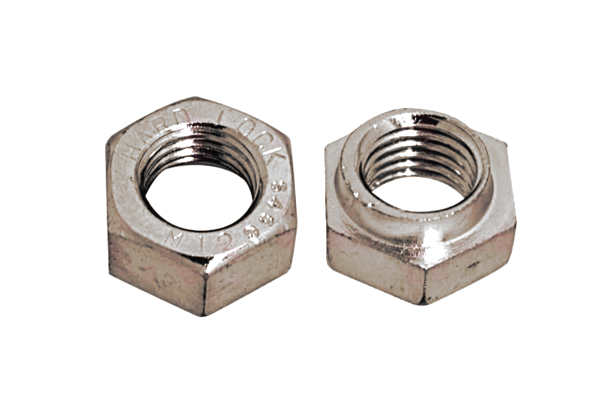高強度の鉄[S45C・焼入れ]/三価ホワイト ハードロックナット [リム無] (細目) M10 (太さ=10mm)用 <ピッチ:1.25> 【 バラ売り : 1組入り 】
